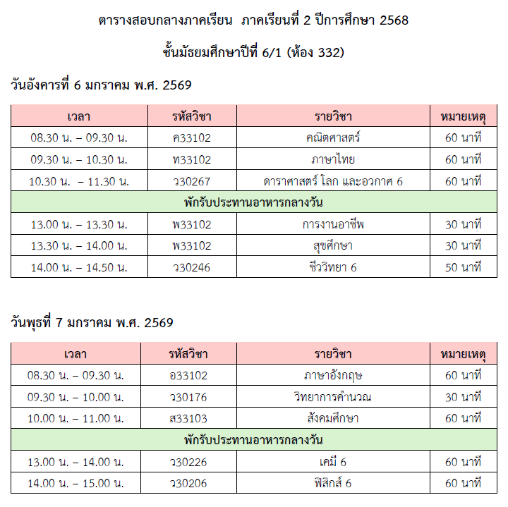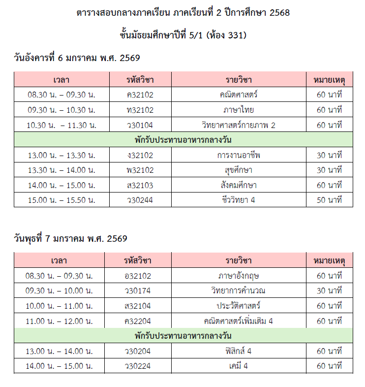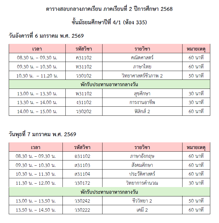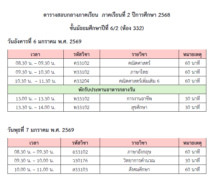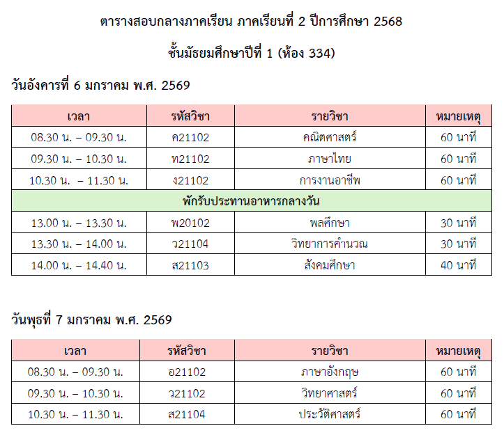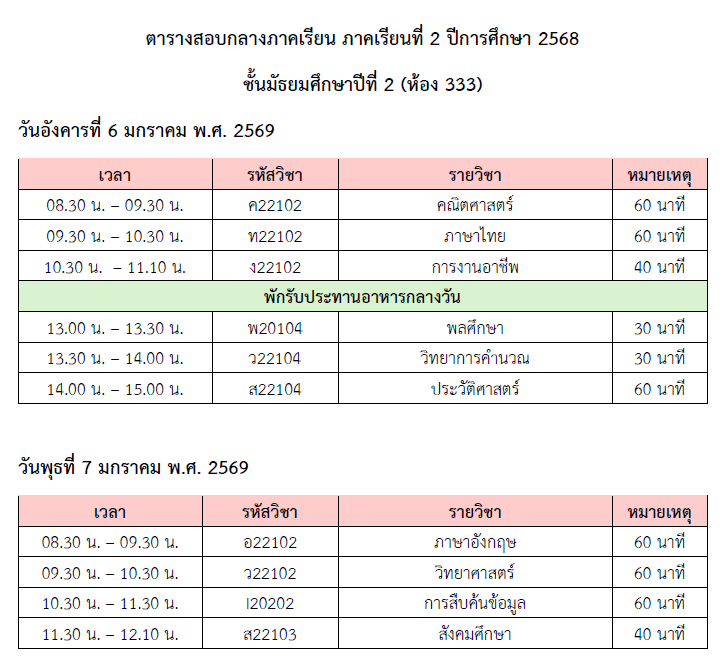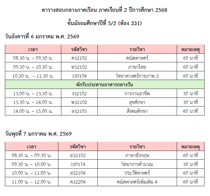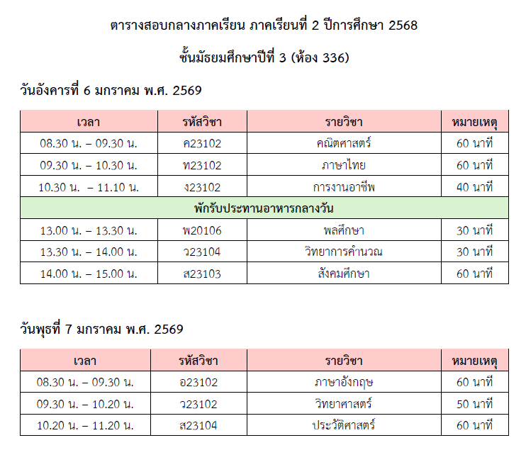 slideกลุ่มบริหารวิชาการ ตารางสอบกลางภาคเรียนที่ 2 ปีการศึกษา 2568 วันพุธที่ 24 ธันวาคม 2025 admin ความคิดเห็น FacebookFacebookLINELine