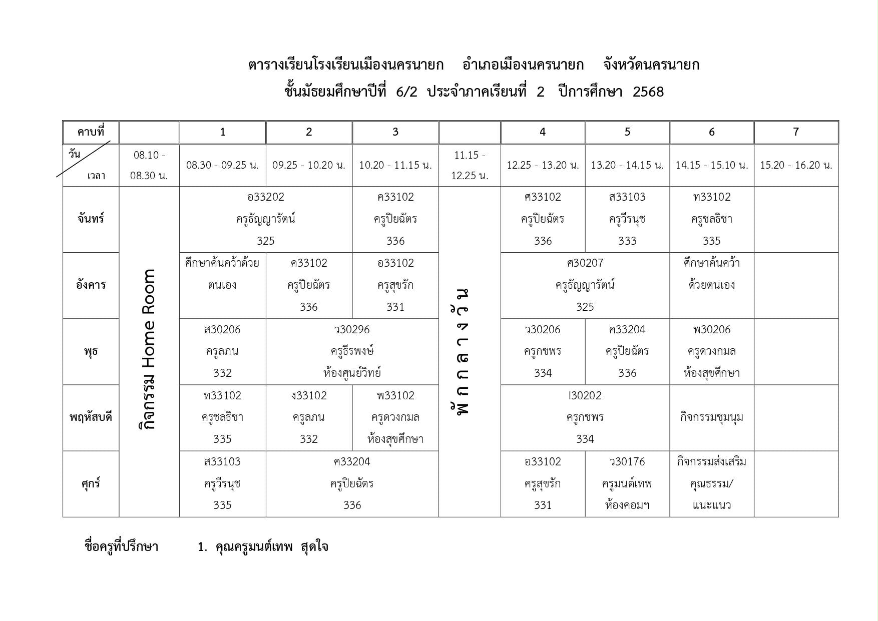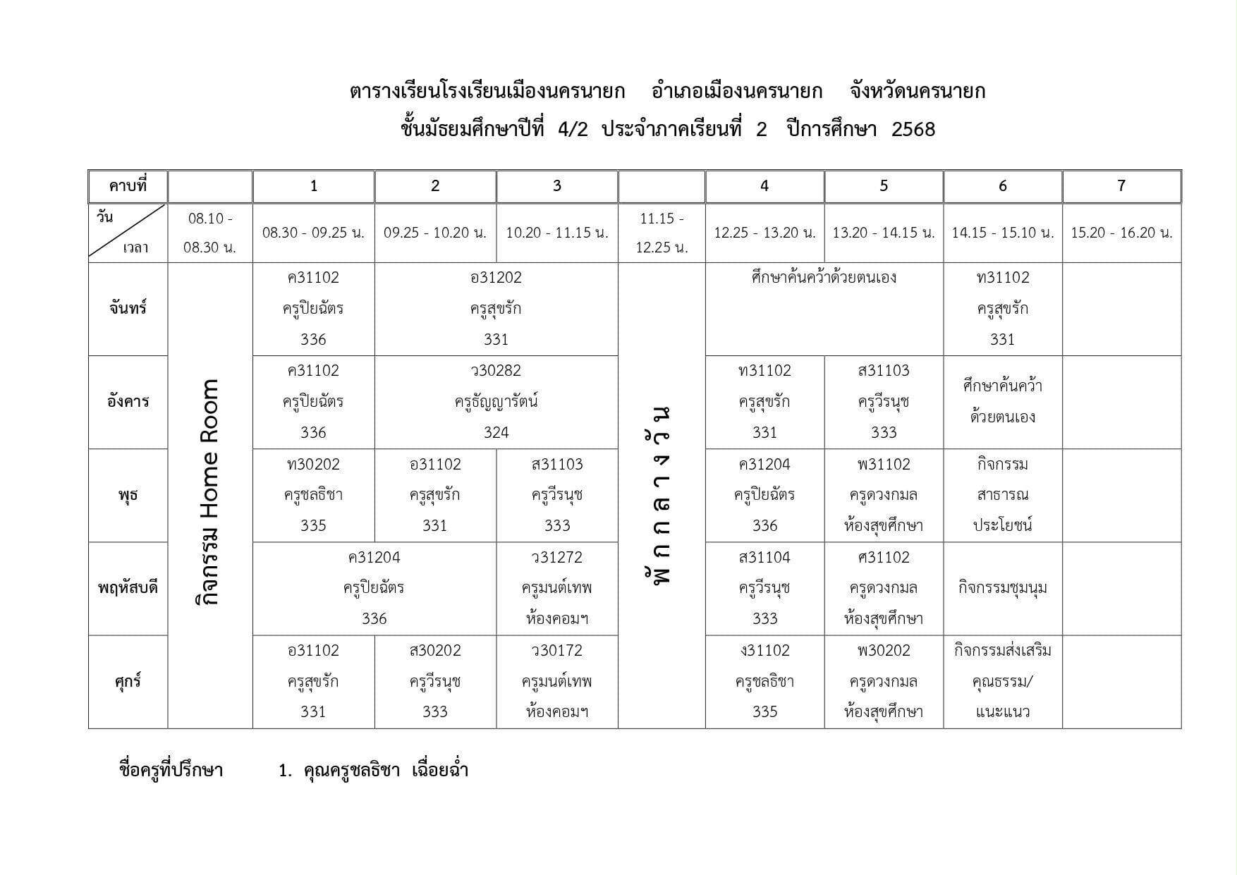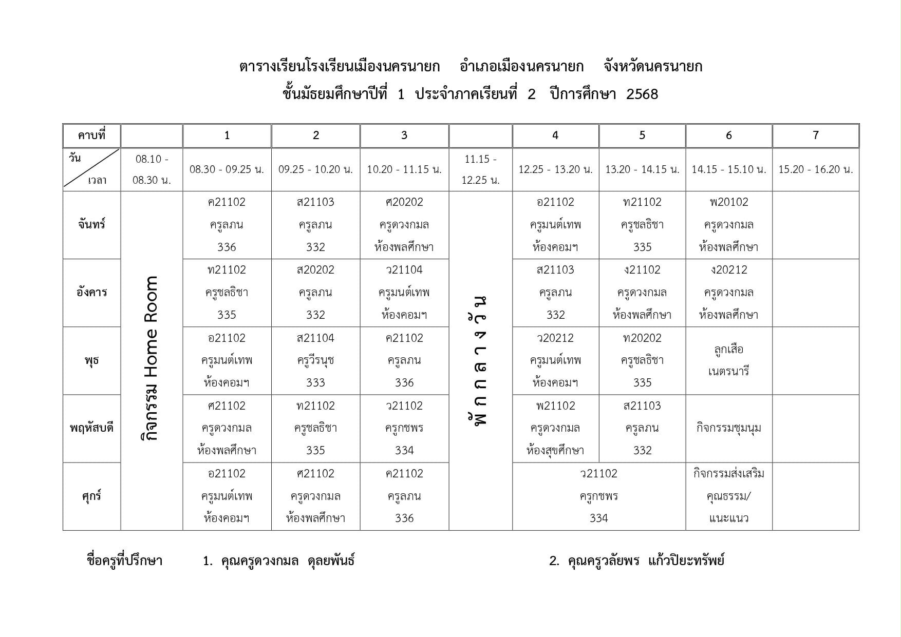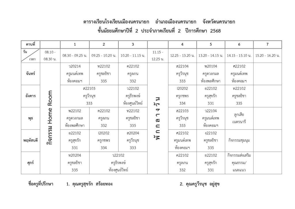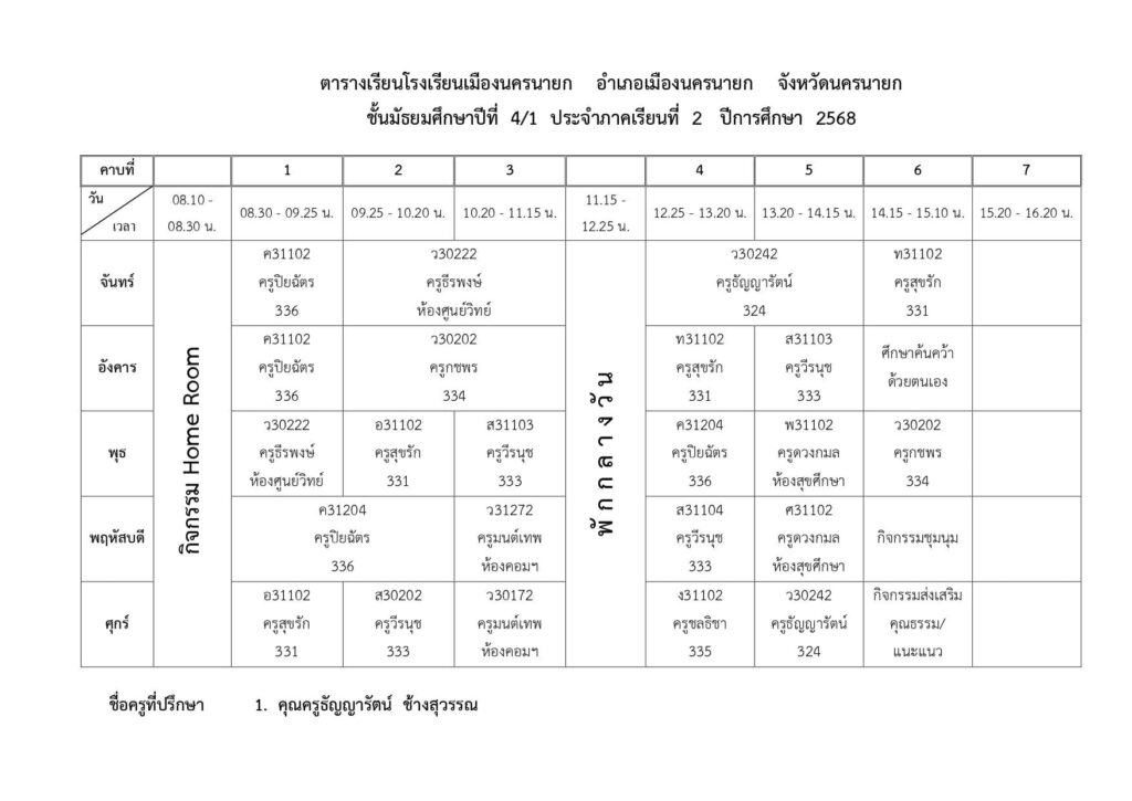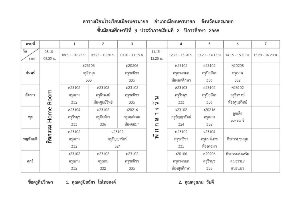 ตารางเรียนของนักเรียนโรงเรียนเมืองนครนายก