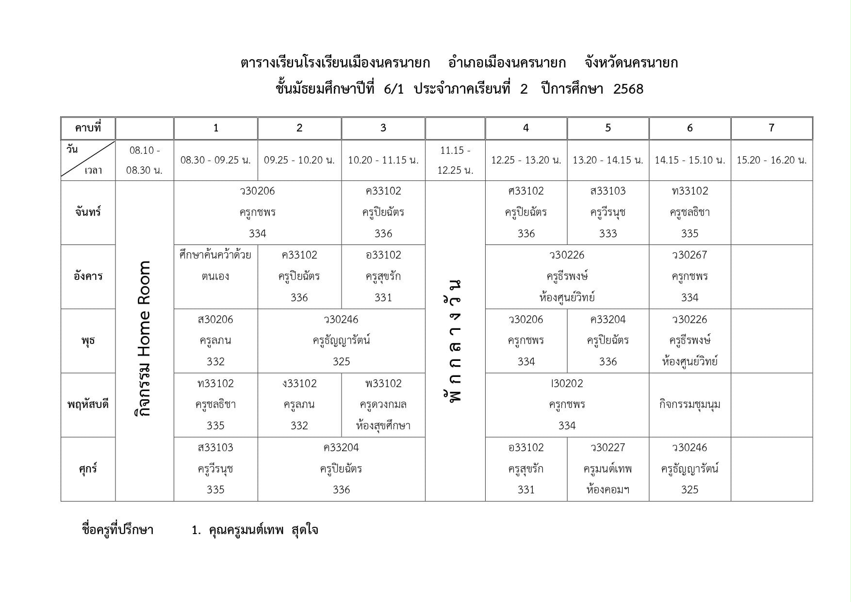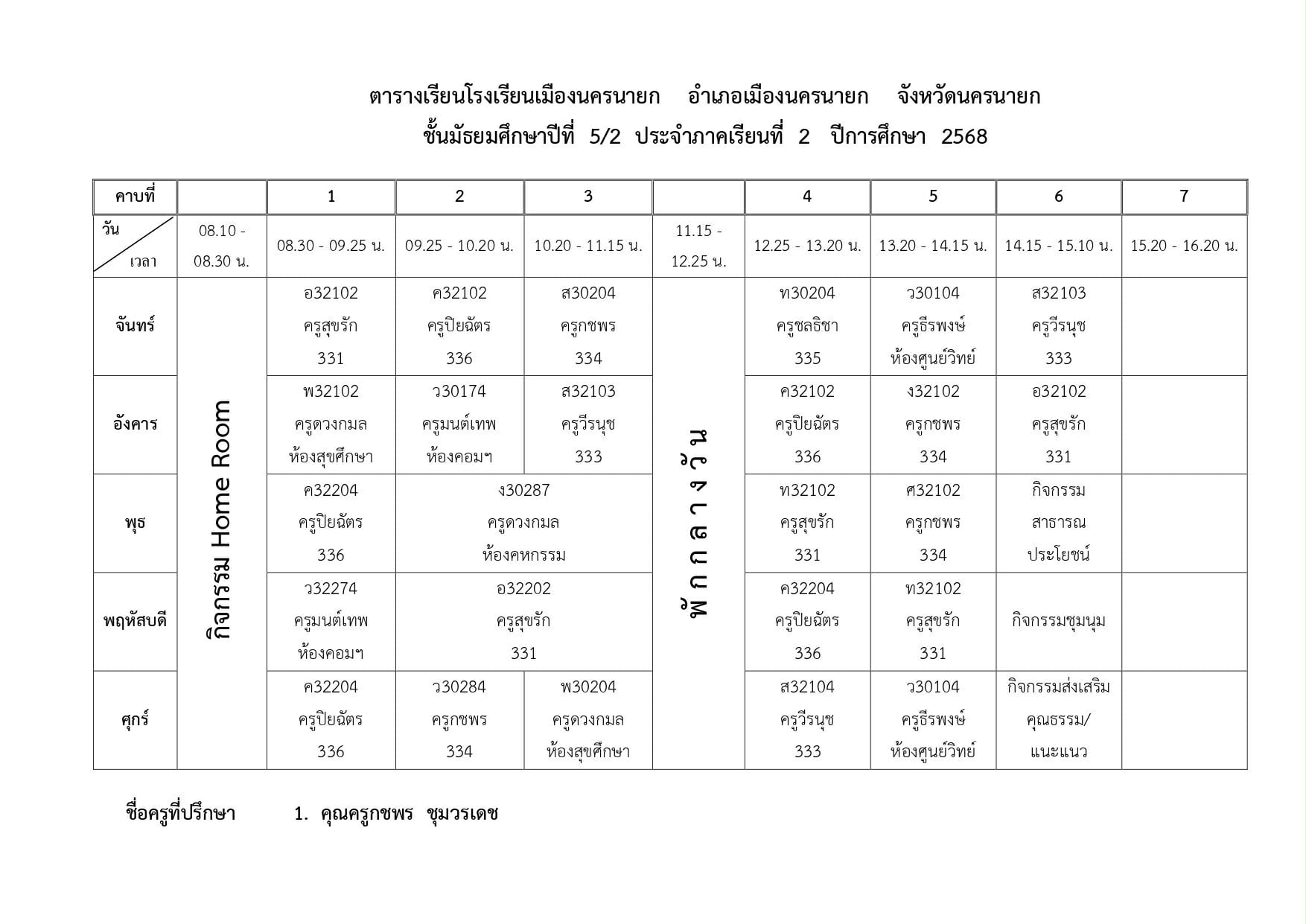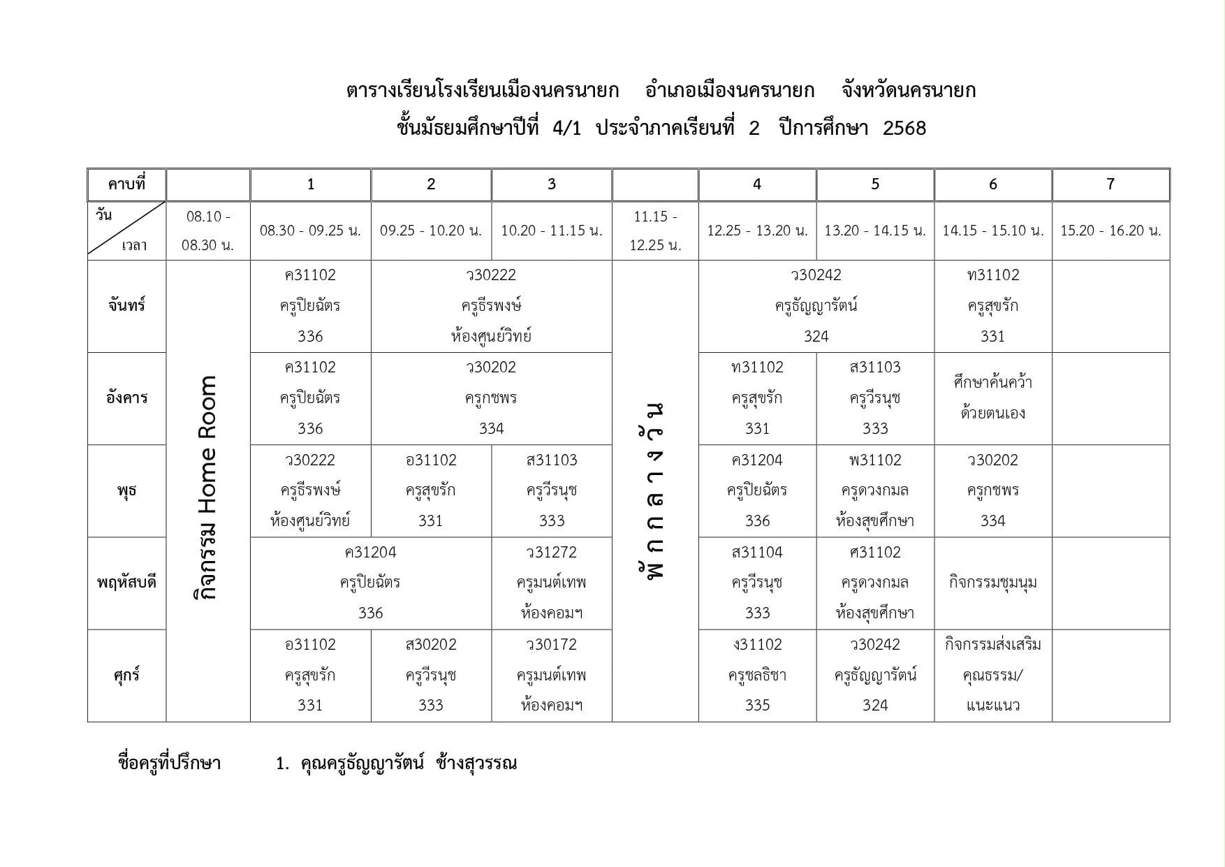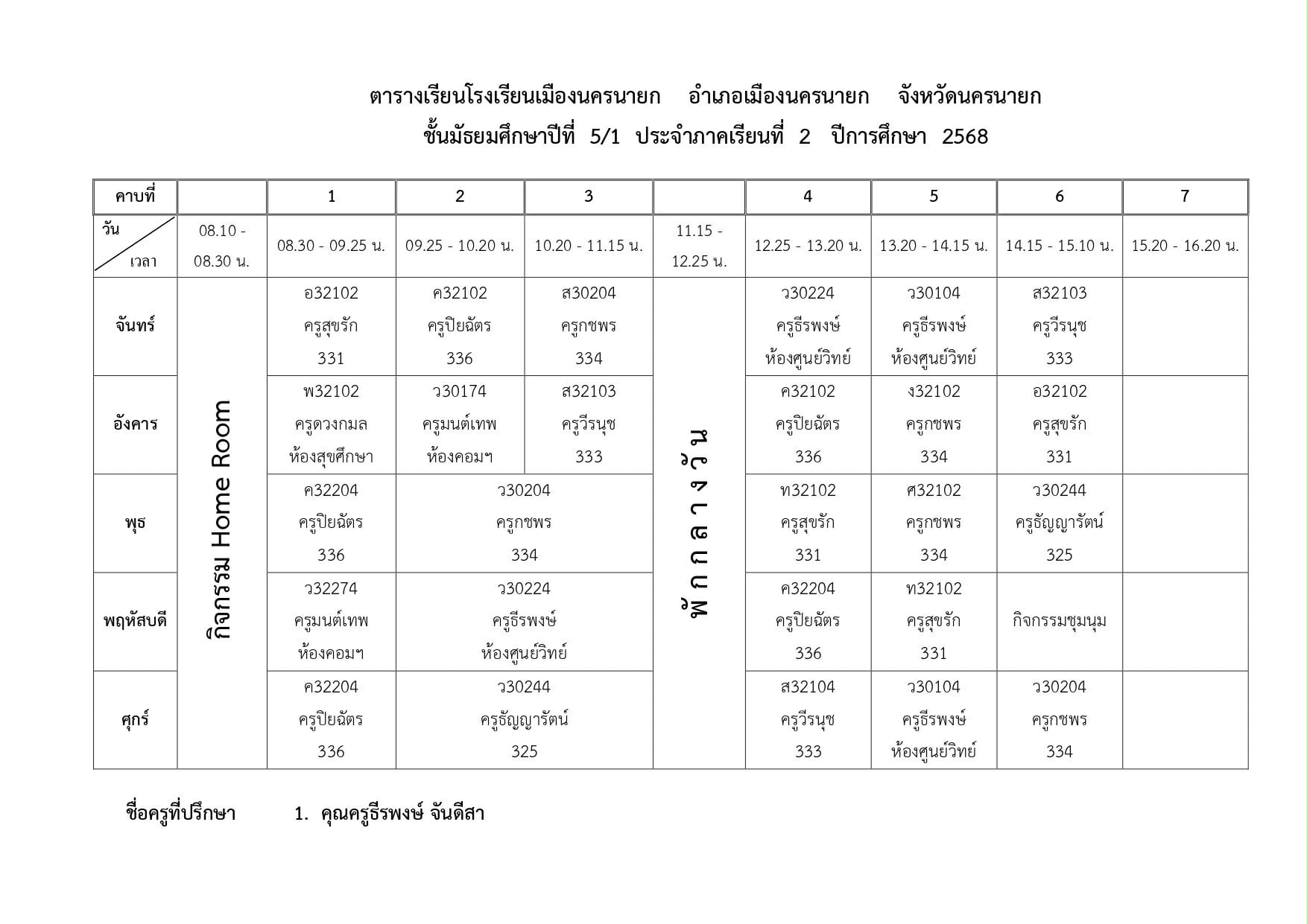 ตารางเรียนของนักเรียนโรงเรียนเมืองนครนายก